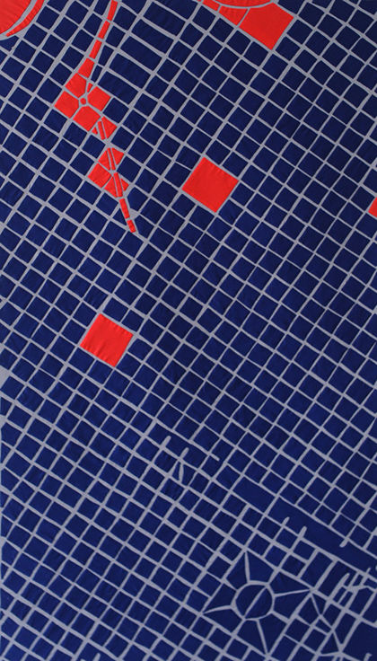 Like the city, the mola is also made of layers, labyrinths and inventions. The Mola Maps, with their intricate semi-abstract compositions, were sewn by indigenous women from Guna Yala region (Panama) in their traditional technique, following the drawings and directions from the artist. It looks that Valencia has restricted the color range to highlight the stitches tensioning the layers of fabric, and with it, to stand out the beautiful and profoundly human imperfection of the molas. The fact that they were hand-made by women that have never set foot in the cities evoked by the maps they sew, makes even more complex the semantic density of these pieces that speak about the layers and the physical and emotional labyrinths in we all live.